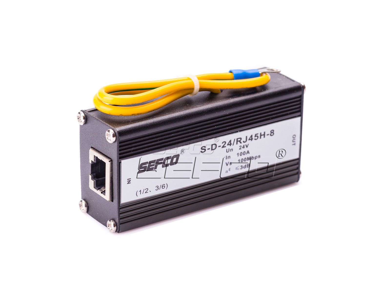 RJ45 Surge arrester for Ethernet, Cat 5 network systems against surges. 10BaseT,100BaseT, 4 wires and 8